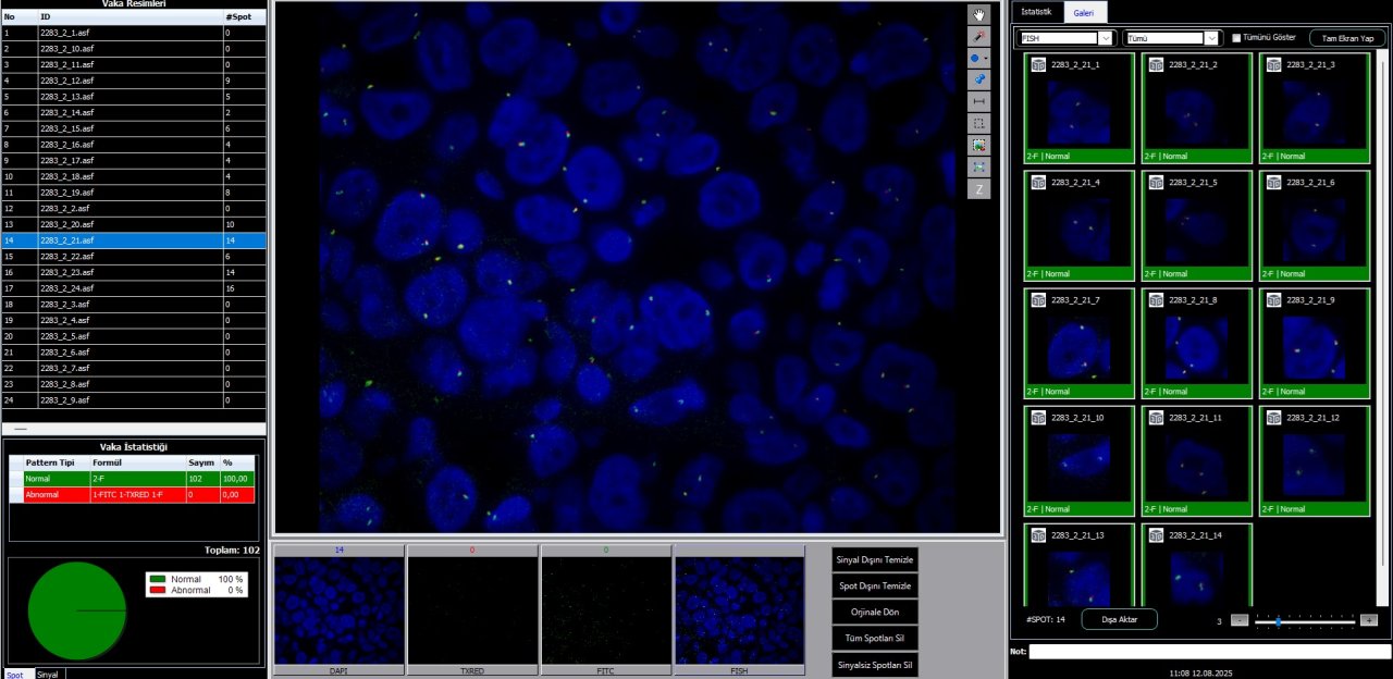 Laboratuvarımızda FISH yöntemiyle özellikle bazı kanser türlerinde genetik düzeyde meydana gelen özel değişiklikleri araştırıyoruz. Bu analizler, hastaların kişiselleştirilmiş tedavi alabilmesi için kritik rol oynar.
